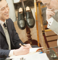 メニューはフルオーダー・パーソナルオーダー・オーダーシャツ・オーダーコートがあり、フルオーダーに関しては、専属の採寸師兼テーラーがお客様とのカウンセリングから、絵でスタイルを書き起こし仮縫いを経て、お客様の元へ納品致します。