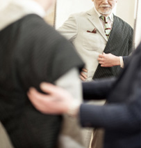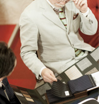 スーツづくりは、「フィッター」と呼ばれるオーダーメイドのプロと話すことから始まります。