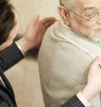フィッターがメジャーとゲージ服を使って採寸致します。